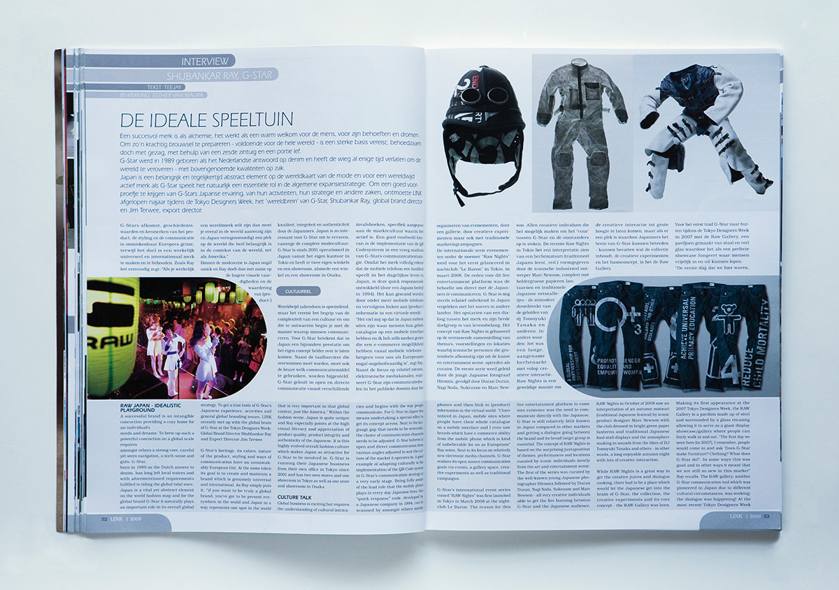 An extensive feature on G-Star Japan, for LINK magazine in The Netherlands.